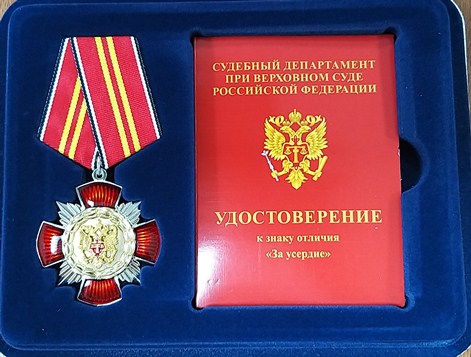 За значительный личный вклад в развитие судебной системы, всестороннее содействие в укреплении и совершенствовании правосудия в Российской Федерации Знаком отличия Судебного департамента при Верховном Суде РФ «За усердие II степени» награждены сотрудники Лесозаводского районного суда Приморского края: начальник отдела делопроизводства Шаповалова Марина Николаевна, консультант суда Локтева Виктория Викторовна, ведущий специалист Нестеренко Лидия Валериевна, секретарь суда Трофимова Марина Сергеевна.