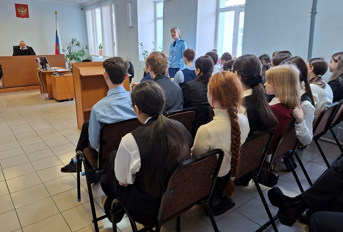 В рамках мероприятий, посвященных Всероссийскому дню правовой помощи детям, в Лесозаводском районном суде состоялась встреча старшеклассников МОБУ СОШ №5 Лесозаводского муниципального округа с федеральным судьей Галаюда С.С. и старшим помощником прокурора Харченко Ю.Ю. ![]() Федеральный судья Лесозаводского районного суда Приморского края Сергей Степанович Галаюда провел «Урок правосудия» для учащихся 10-х классов, познакомил ребят с судебной системой Российской Федерации. Ребята активно задавали вопросы, так, например, их интересовал вопрос, как стать судьей. В рамках встречи школьники поприсутствовали в открытом судебном заседании по уголовному делу в отношении жительницы г. Лесозаводска, обвиняемой по ч. 1 статьи 158 УК РФ (кража). Старший помощник прокурора Юлия Юрьевна Харченко рассказала о видах мошеннических действий в отношении несовершеннолетних, привела примеры из своей практики.